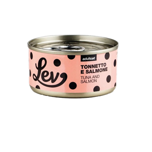 Natural Code anche per la sua linea Lev umido gatto utilizza esclusivamente tonnetto e salmone freschi pescati in mare.