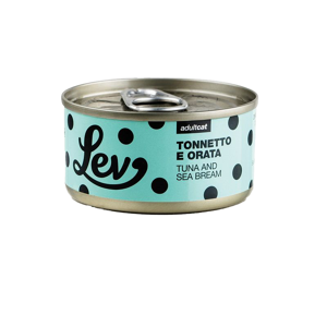 Alimento complementare naturale per gatti adulti, a base di tonnetto e orata cotti al vapore e lavorati a mano e riso.