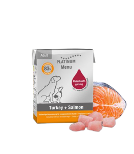 COMPOSIZIONE: carne fresca di tacchino (63 %), salmone fresco (20 %), patata disidratata, verdure disidratata ( broccoli, carote, porro ), olio d'oliva.